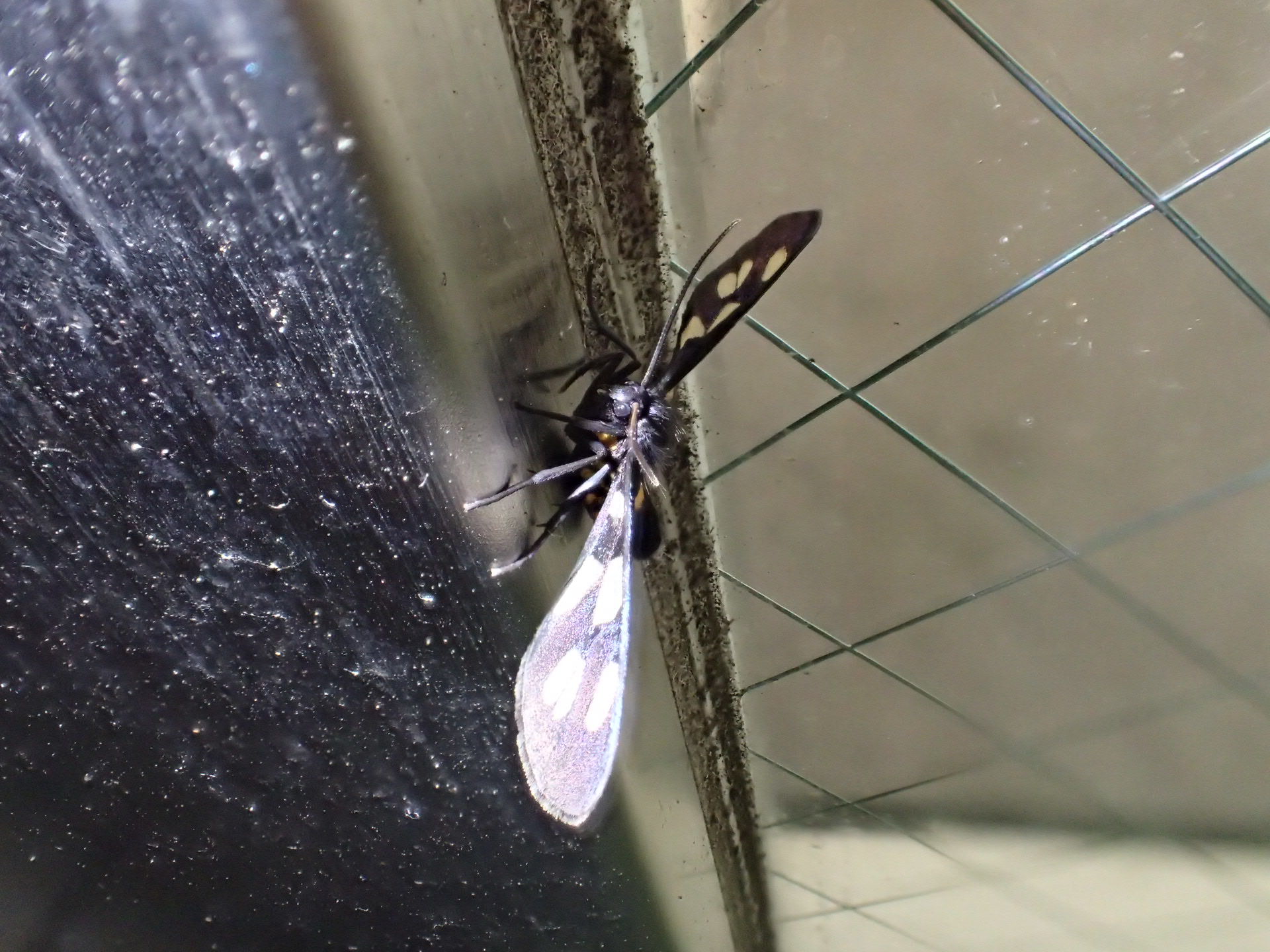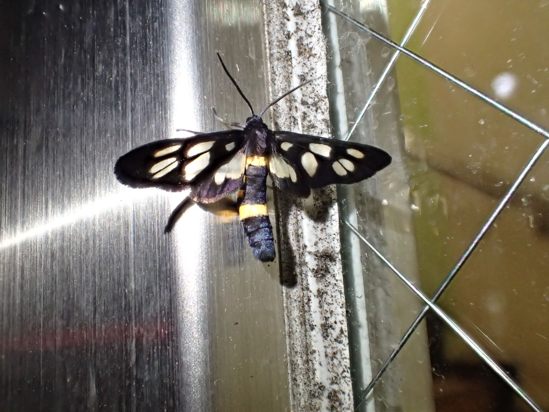 23時も終わろうとするころ、ジムのあるビルの入り口のドアにはカノコガ。